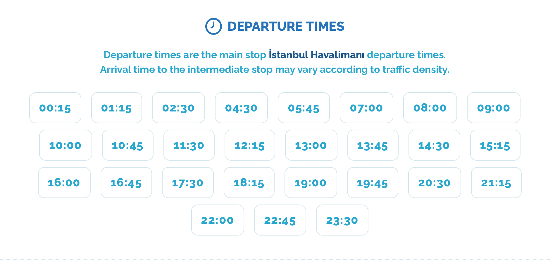 The HVIST-11 shuttle runs about every 40 minutes from Istanbul Airport and operates 24/7.